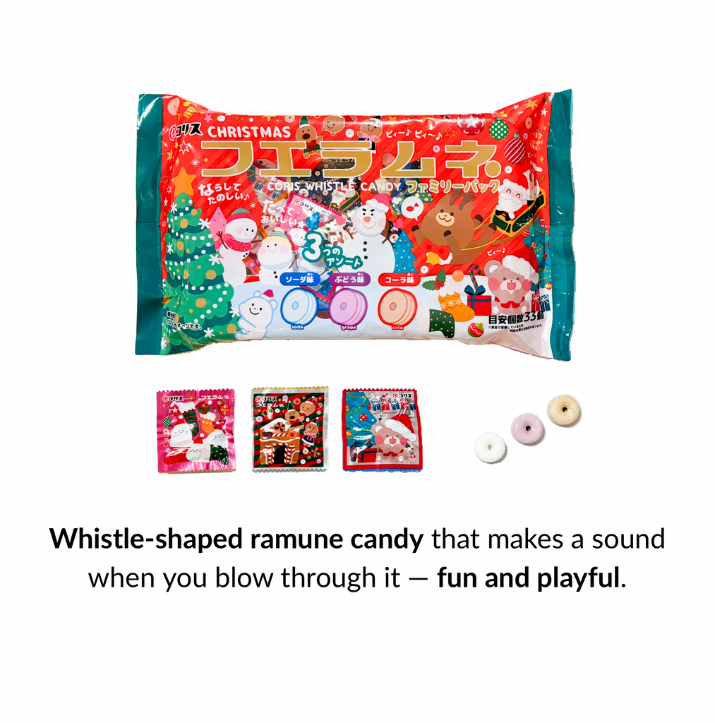 Refreshingmicrophone-shaped Ramune, a favorite among kids in Japan, and funwhistle Ramunethat really whistles.
